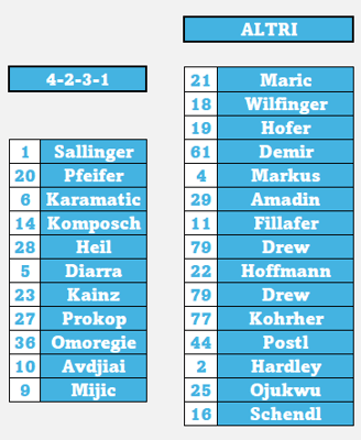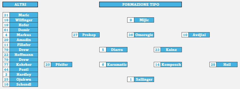 Il rinnovamento parte quindi con nuovi giovani: Omoregie, anche lui in prestito dal Salisburgo, Markus, Diarra, gli altri prestiti di Demir e Huskovic dalle due squadre di Vienna.